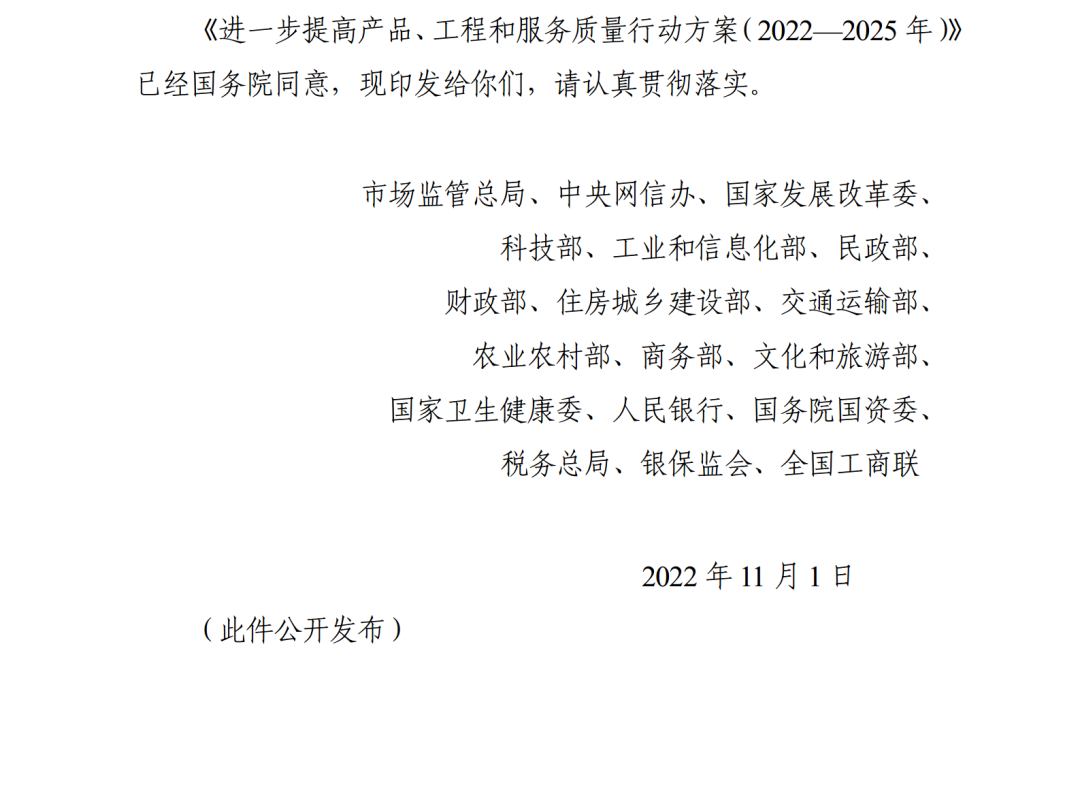 進一步提高產(chǎn)品、工程和服務(wù)質(zhì)量行動方案(2022—2025年)