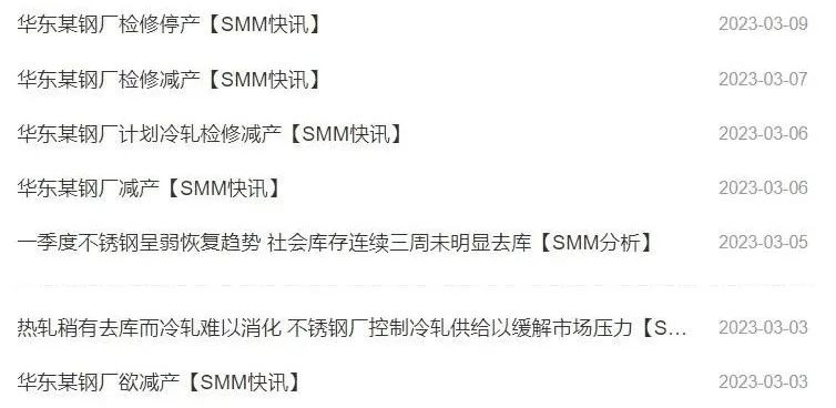昨日,有市場(chǎng)消息稱,“由于成本過高,虧損嚴(yán)重,華東某鋼廠于3月9日開始檢修停產(chǎn),暫定檢修至4月15日,預(yù)計(jì)影響鋼坯產(chǎn)量約7.4萬(wàn)噸,均為300系?!?/p>